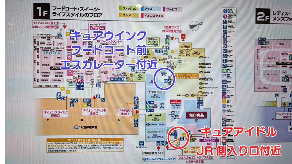 - 1F:キュアウィンク(フードコート近くのエスカレーター前)