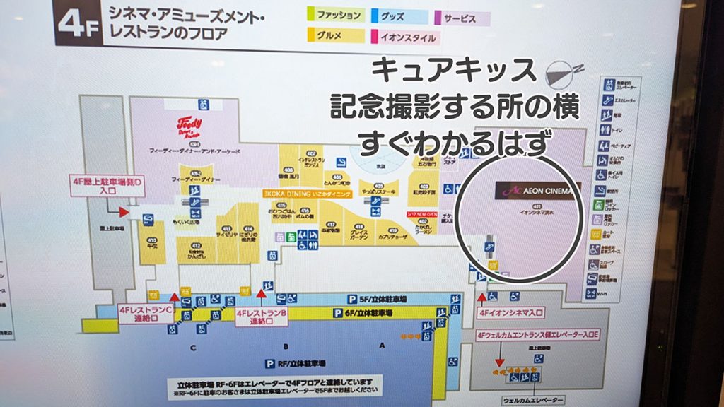 - 4F:キュアキッス(記念撮影ポップ横)→そのまま写真タイム