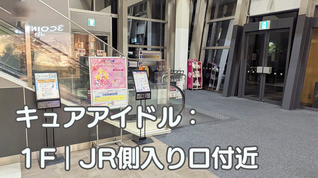 2Fのキュアキュンキュンのスタンプをゲットした後、すぐ近くのエスカレーターで下るとその付近にキュアアイドルのスタンプがあるよ。